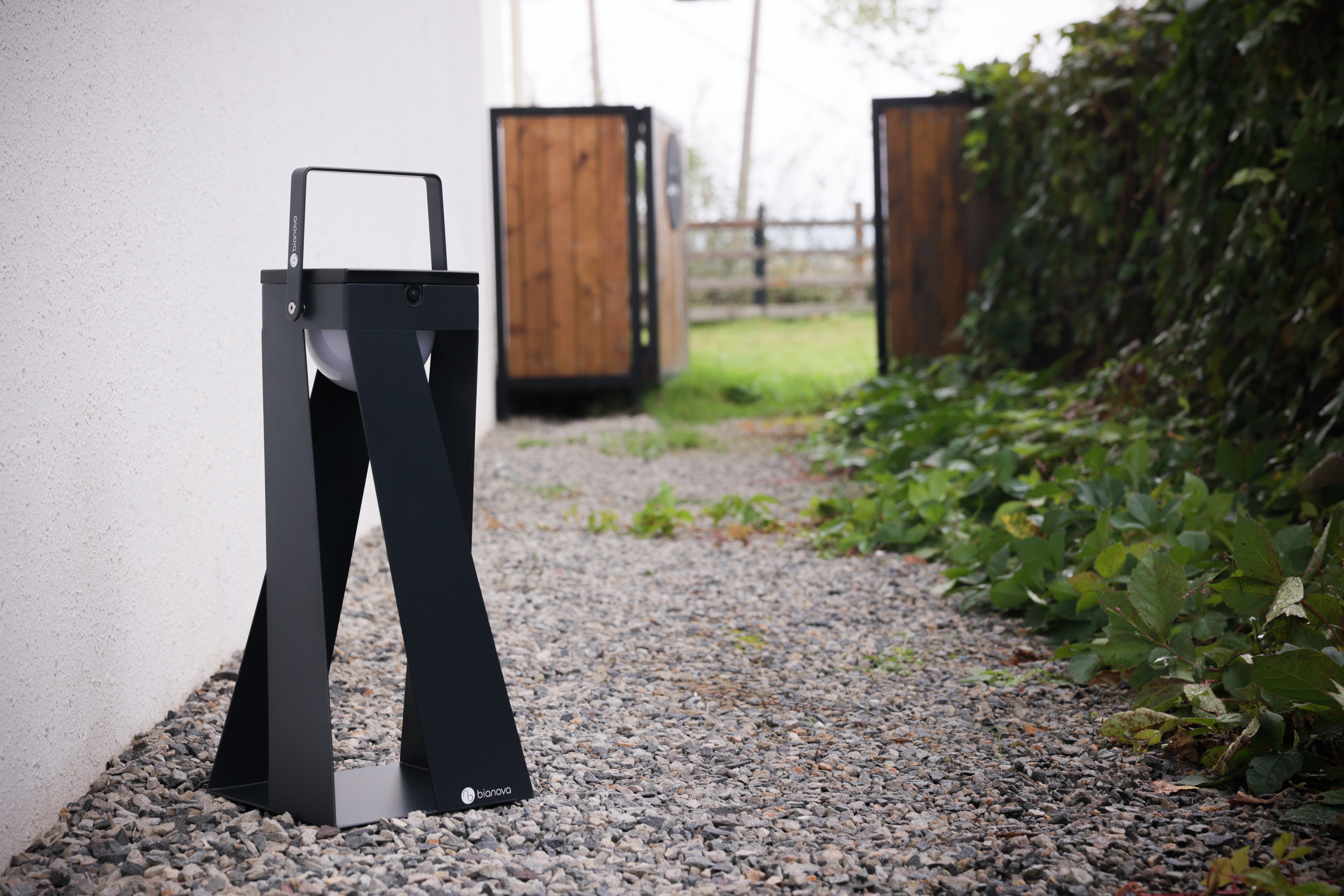 The Oxalis family's industrial design provides a stylish solution for any corner of your garden or outdoor space. The lamp's crossed geometry creates a base with a larger surface area than the top, resulting in a slender and sturdy figure.